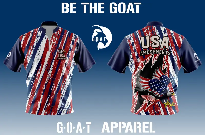 USA AMUSEMENTS partnered up with GOAT APPAREL to bring you this beautiful and comfortable jersey.